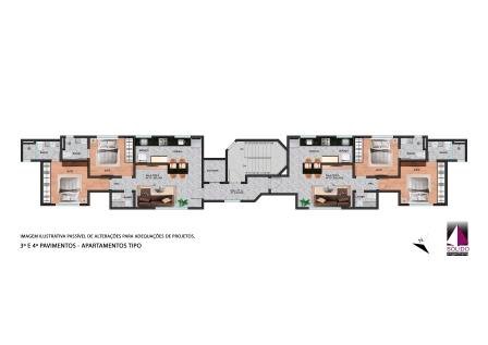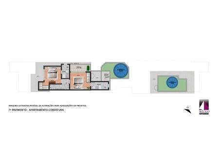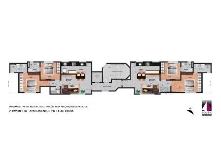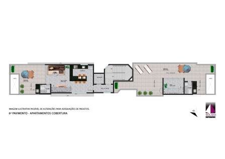 Edifício com 7 pavimentos, com 02 (duas) áreas privativas, 05 (cinco) apartamentos tipos e 02 (duas) coberturas.